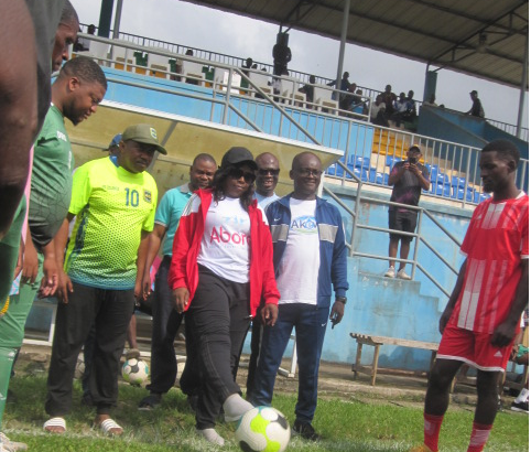 La Directrice d’exploitation de Sobraga Oyem, Marie Yvonne Moubamba, donnant le coup…